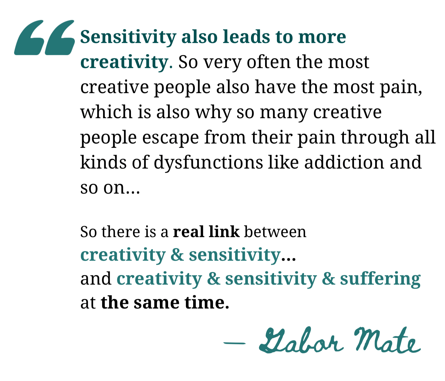 Maté’s work reminds me that there is a real link between creativity and sensitivitand that tending to our wounds doesn’t diminish our spark. It protects it.